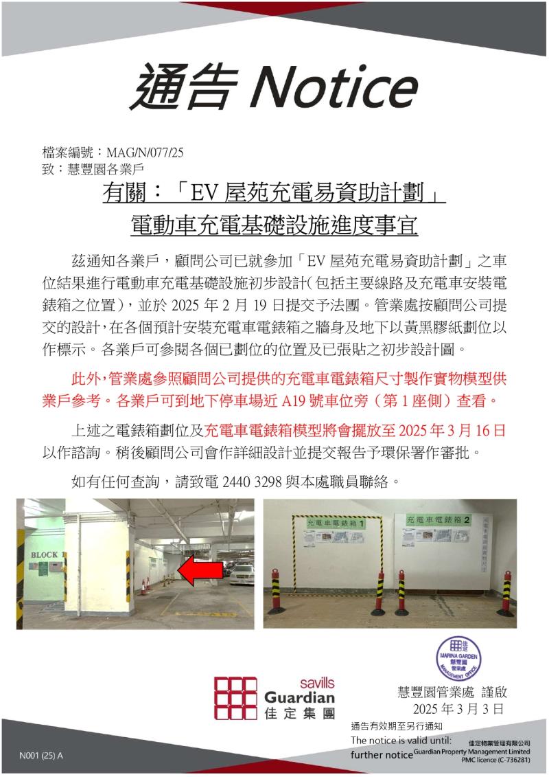慧豐園車位業主參加「EV屋苑充電易資助計劃」